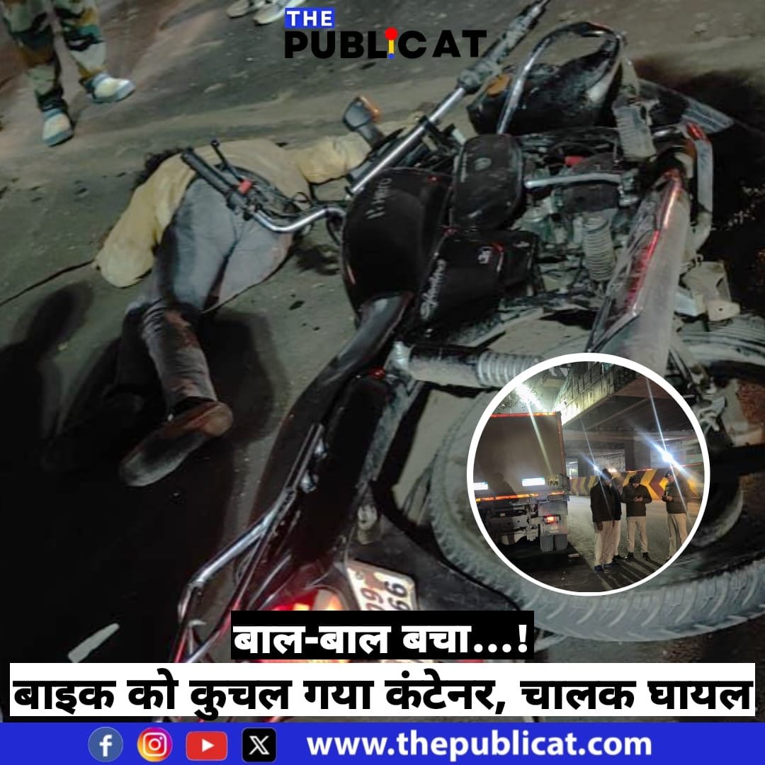 द पब्लिकेट, इंदौर। अलसुबह विजय नगर चौराहे पर सड़क हादसा हो गया। चौराहा पार कर रहे कंटेनर ने बाइक चालक को जमकर टक्कर मार दी और बाइक के पहियें को कुचलते हुए आगे निकल गया। हादसे के बाद बाइक चालक पास में गिर पड़ा था। उसे लोगों ने अस्पताल पहुंचाया है।