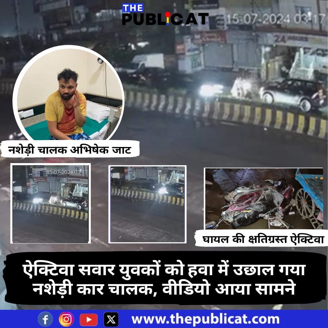 द पब्लिकेट, इंदौर। रविवार देर रात बॉम्बे अस्पताल चौराहे स्थित 24X7 बेकरी के सामने से निकल रहे ऐक्टिवा चालक को एक तेज रफ्तार से आ रहे नशेड़ी चालक ने जोरदार टक्कर मार दी। टक्कर इतनी भनायक थी कि ऐक्टिवा सवार दोनों युवक करीब 10 फिट तक उछल कर दूसरी खड़ी गाड़ी पर जा गिरे। मामले का सीसीटीवी फुटेज सामने आया है, जिसमें साफ दिख रहा है कि किस तरह से नशेड़ी चालक तेज रफ्तार आया और ऐक्टिवा चालक और अन्य गाड़ी को टक्कर मार दी।