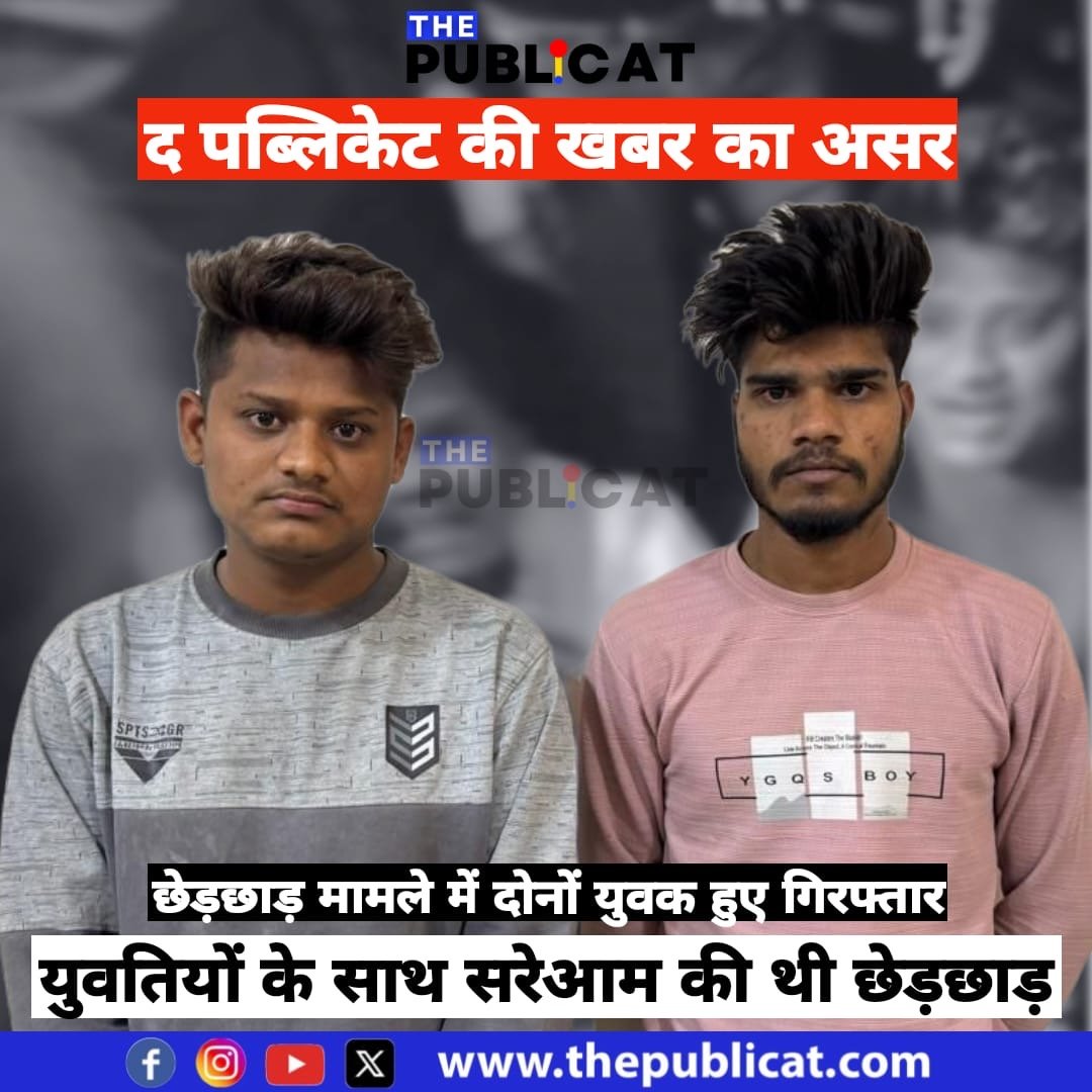 द पब्लिकेट, इंदौर। लसूड़िया थाना क्षेत्र स्थित स्कीम नंबर 78 में कल रात दो नशेबाज लड़कों ने जिन युवतियों के साथ छेड़छाड़ की थी उनको पुलिस ने गिरफ्तार कर लिया है। द पब्लिकेट ने मामले का वीडियो वायरल कर खबर प्रकाशित की थी। अधिकारियों के पास मामला संज्ञान में आया और उन्होंने तुरंत कार्रवाई की है। पुलिस ने आरोपी नीरज पिता कमलेश गुलसईया 21 निवासी रघुनंदन बाग कालोनी और आयुष पिता शेर सिंह सोलंकी 19 रघुनंदन बाग कालोनी को गिरफ्तार कर छेड़छाड़ का केस दर्ज किया है।