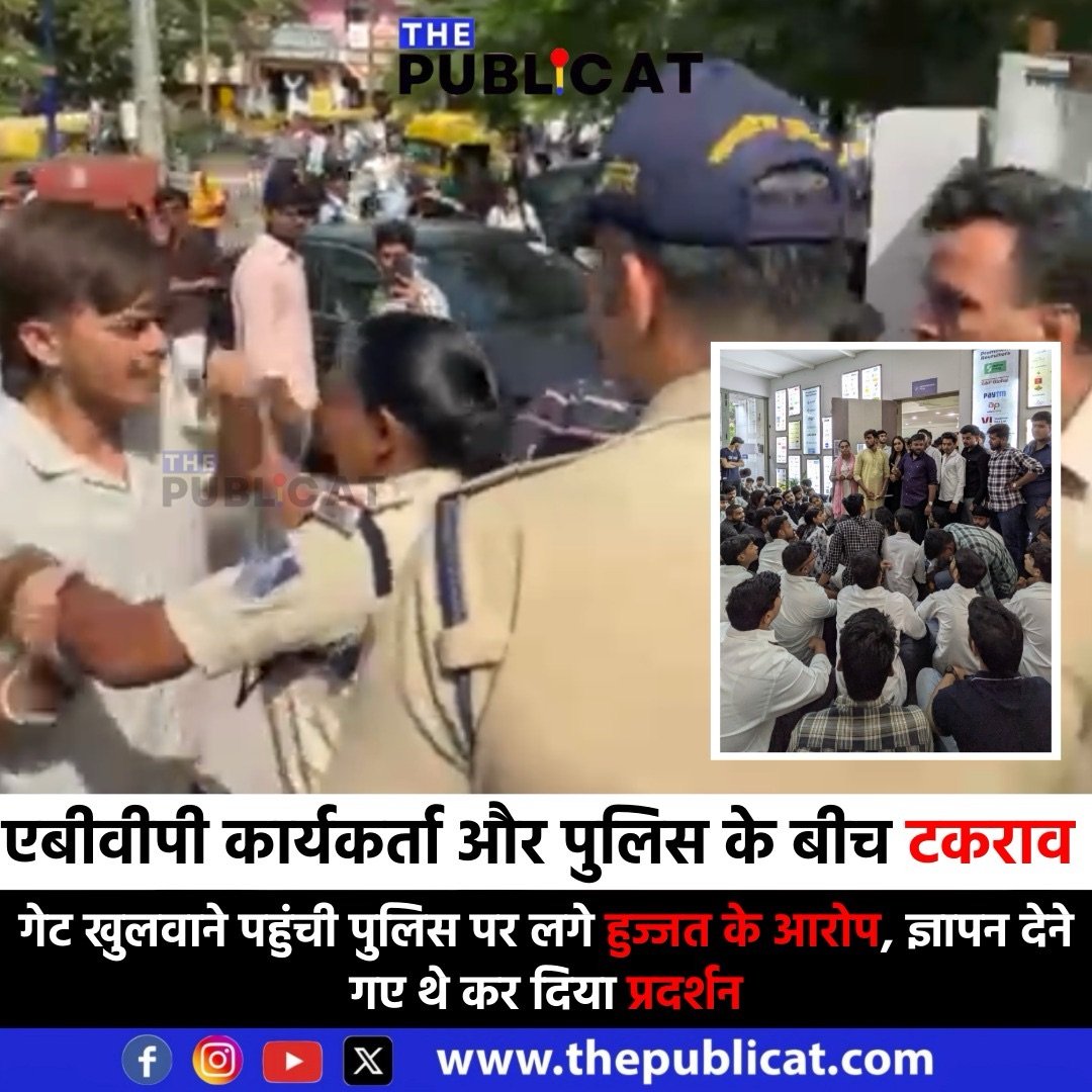 बताया जा रहा है एबीवीपी की नई कार्यकारणी बनने के बाद अब कॉलेज की कार्यकारणी बनने की प्रक्रिया चल रही है। इसी बीच दो दिन पहले प्रेस्टीज कॉलेज में बैठक ले रहे दो एबीवीपी कार्यकर्ताओं की कॉलेज डायरेक्टर से बहस हो गई। अगले दिन कार्यकर्ताओं ने खुन्नस में कॉलेज में प्रदर्शन करने का आवाहन कर दिया। बताया कि कॉलेज में अनियमिताओं को लेकर प्रदर्शन होगा। शुक्रवार को एबीवीपी का महानगर संगठन मंत्री पीयूष सोनी, नगर मंत्री देवेश गुर्जर सहित कार्यकर्ता प्रदर्शन करने पहुंचे तो प्रबंधक ने ध्यान नहीं दिया तो कार्यकर्ताओं ने जमकर नारेबाजी की। कार्यकर्ता अपनी मांगों को लेकर ज्ञापन देने पहुंचे तो प्रबंधक ने मुंह मोड़ लिया। जिसके बाद नगर मंत्री देवेश गुर्जर और महानगर संगठन मंत्री पीयूष सोनी आक्रोशित हुए और प्रदर्शन में दौरान कार्यकर्ताओं से गेट लगवा दिए। पहले कॉलेज कमरे में प्रदर्शन हुआ जिसके बाद बाहर जमकर नारेबाजी करते हुए मेन गेट भी लॉक करवा दिया। इसमें जिन छात्रों को बाहर जाता था उन्हें भी रोका गया। छात्रों की परेशानी देख पुलिस को सूचना दे दी गई। थोड़ी देर में जब पुलिस पहुंची तो उनसे भी गलत व्यवहार हुआ। नारेबाजी के दौरान पुलिस ने गेट खुलवाया तो कार्यकर्ताओं ने जमकर विरोध किया। कार्यकर्ता इतना आक्रोश में थे जैसे ही उनके साथ मारपीट हो गई हो। जब पुलिस ने गेट खोलने पर दबाव बनाया तो सैकड़ों कार्यकर्ता उनपर टूट पड़े। कोई गेट खोलने को राजी नहीं हुआ तो पुलिस को अपना बल लगाकर गेट खुलवाना पड़ा। उस दौरान एक कार्यकर्ता ने जबरदस्ती की। महिला पुलिसकर्मी का हाथ पकड़ते ही अन्य पुलिसकर्मियों ने उसे पकड़ा लेकिन वह भागता फिरा। यह देख अन्य कार्यकर्ताओं ने पुलिस के खिलाफ नारेबाजी की और पुलिस पर युवती कार्यकर्ता को टच करने के आरोप लगाए।