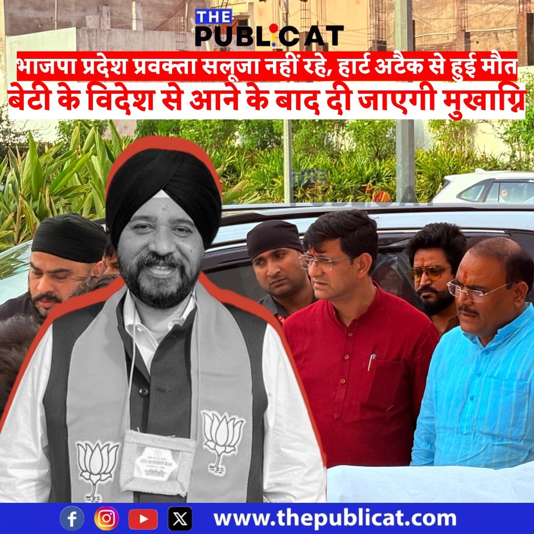 द पब्लिकेट, इंदौर। भाजपा प्रदेश प्रवक्ता नरेंद्र सिंह सलूजा का आज दोपहर में हार्ट अटैक से निधन हो गया। सलूजा के निधन की सूचना पर मुख्यमंत्री मोहन यादव सहित अन्य भाजपा नेताओं ने ट्वीट कर श्रद्धांजलि दी। उनका गौरव अस्पताल में इलाज के दौरान निधन हुआ है। मौके पर महापौर पुष्यमित्र भार्गव, भाजपा नगर अध्यक्ष सुमित मिश्रा सहित अन्य नेता पहुंचे। बताया जा रहा है सलूजा का अंतिम संस्कार उनकी बेटी के आने के बाद किया जाएगा।
