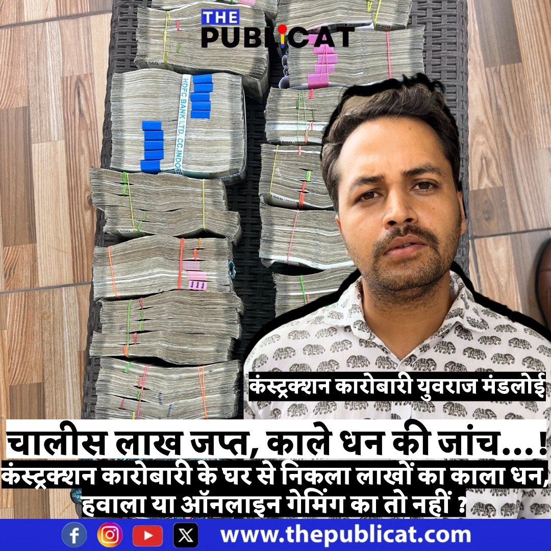द पब्लिकेट, इंदौर। विजय नगर पुलिस ने कल स्कीम नंबर 54 स्थित कंस्ट्रक्शन कारोबारी युवराज मंडलोई के घर से 40 लाख का कला धन जप्त किया है। पुलिस ने जब युवराज से 40 लाख रुपए के बारे में जानकारी मांगी तो वह कुछ बोल नहीं पाया। पुलिस ने रुपए जप्त कर आयकर विभाग को जांच सौंपी है। संभवतः लाखों रुपए ऑनलाइन गेमिंग या हवाले के हो सकते है।