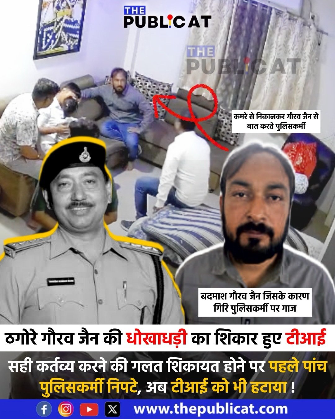 उल्लेखनीय है कि लसूड़िया पुलिस के पांच पुलिसकर्मी एक अप्रैल को दो साल के पेंडिंग चल रहे स्थाई वारंट तमिल करने ठगोरे गौरव जैन के घर उसे दबोचने पहुंचे थे। ठगोरे ने पुलिस को देख अंदर से दरवाजा लगा दिया था लेकिन पुलिस ने कारपेंटर को बुलाकर दरवाजा खुलवाया और गौरव को पकड़कर थाने ले गई। अगले दिन ग्वालियर पहुंचकर उसे कोर्ट को हवाले कर फुर्सत हो गई। लेकिन असली कहानी तब शुरू हुई जब ठगोरे ने पांच पुलिसकर्मियों के खिलाफ शिकायत कर दी। मामला शहरभर में चर्चित हुआ। पुलिस पर लूट, मारपीट जैसे गंभीर घटनाओं का आरोप लगा। जांच में अटैच हुए पुलिसकर्मी अपने सबूतों को प्रस्तुत करते लेकिन शायद इस झूठी शिकायत की वजह से टीआई पर भी छींटे उड़े और उन्हें भी सात थाना प्रभारियों की लिस्ट में डालकर हटा दिया गया।