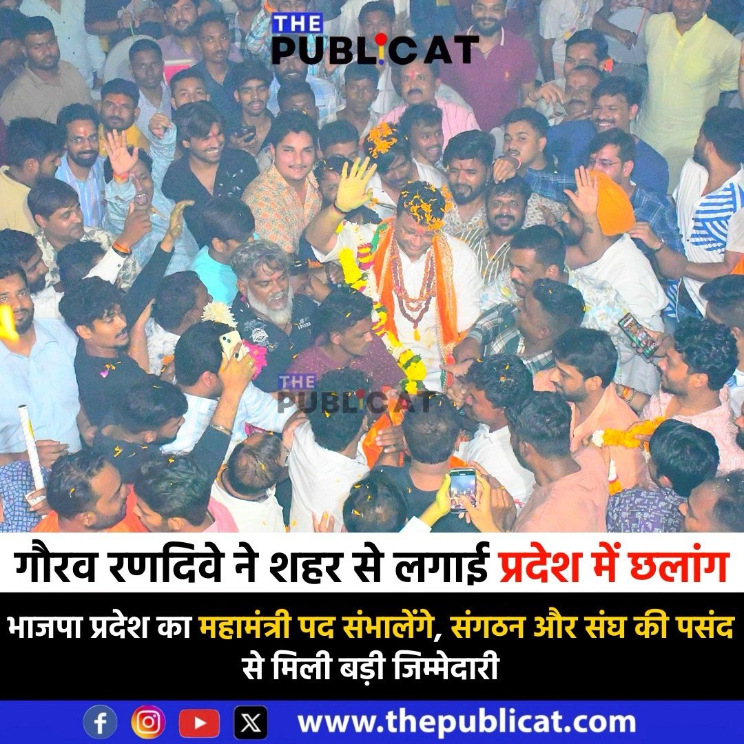 द पब्लिकेट, इंदौर। इंदौर भाजपा के पूर्व नगर अध्यक्ष गौरव रणदिवे को प्रदेश भाजपा की कार्यकारिणी में बड़ी जिम्मेदारी मिली है। रणदिवे को पार्टी का प्रदेश महामंत्री नियुक्त किया गया है। शहर के चार अन्य नेताओं को भी प्रदेश स्तर पर स्थान मिला है, लेकिन गौरव की नियुक्ति पर सबसे अधिक उत्साह कार्यकर्ताओं में देखा गया।