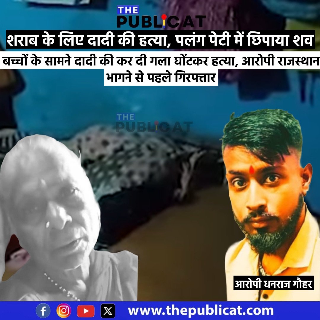 टीआई वीरेन्द्र कुशवाह के अनुसार मृतका की पहचान शांति धन्यज के रूप में हुई है, जो नगर निगम से मस्टरकर्मी के पद से रिटायर्ड थीं और पेंशन से अपना और दो मासूम पोतों का पालन कर रही थीं। आरोपी विकास (पुत्र धनराज गौहर) नशे का आदी है और आए दिन दादी से पैसे की मांग करता था। मंगलवार तड़के करीब 4 बजे उसने शराब के लिए रुपये मांगे, मना करने पर उसने गला घोंटकर शांति की हत्या कर दी और शव को पलंग की पेटी में डाल दिया।