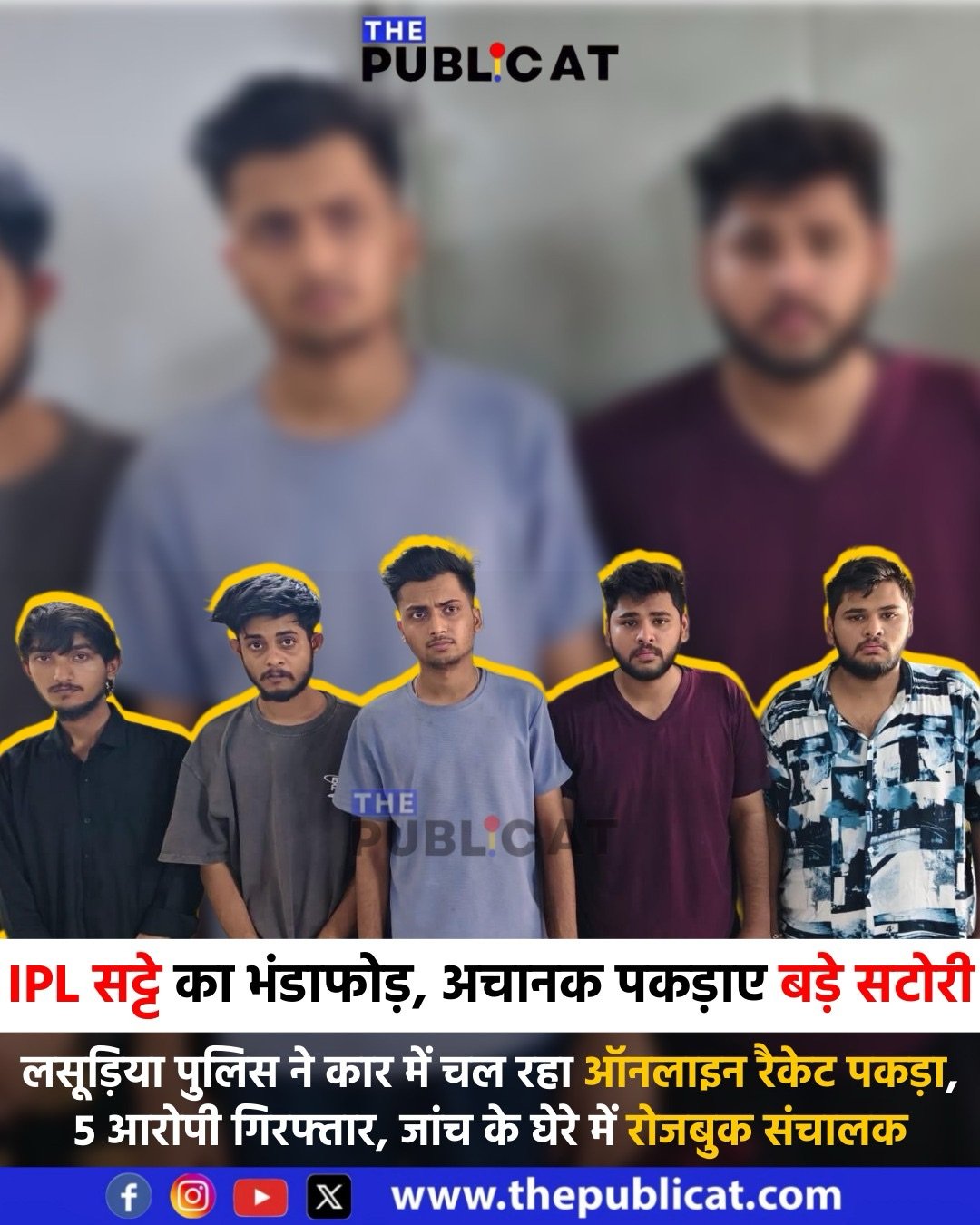 द पब्लिकेट, इंदौर। शहर में IPL के दौरान ऑनलाइन सट्टेबाजी पर इंदौर पुलिस ने बड़ी कार्रवाई करते हुए लसूड़िया थाना क्षेत्र में सक्रिय गिरोह का पर्दाफाश किया है। पुलिस ने मौके से 5 आरोपियों को गिरफ्तार कर 3 मोबाइल फोन और एक कार जब्त की है। सूत्रों ने बताया सटोरियों का लिंक दुबई से है। भोपाल का ऋतिक भंडारी रोजबुक नाम की वेबसाइट चलवाकर सट्टा संचालित करता है। पुलिस जल्द ही बड़ी लीड पकड़ेगी।