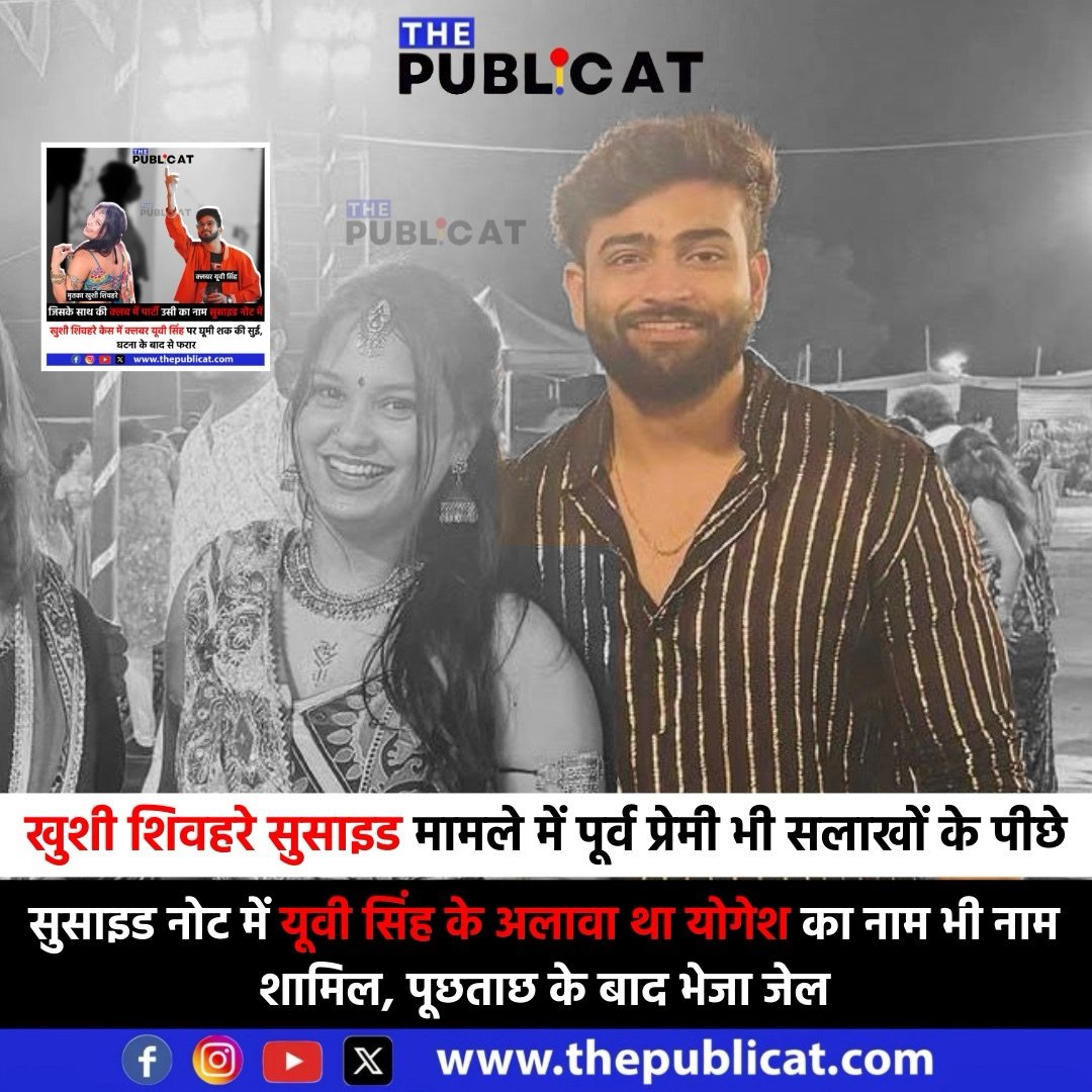 बताया जा रहा है खुशी शिवहरे ने एक पन्ने के सुसाइड नोट में युवी सिंह और योगेश लखेरा का नाम का जिक्र करते हुए आत्महत्या की थी। दोनों ही खुशी को प्रताड़ित करते थे। आत्महत्या करने से पहले खुशी ने आखरी बार रोते हुए योगेश को कॉल किया था, जिसके बाद खुशी ने गलत कदम उठा लिया। योगेश ने ही खुशी के बारे में सूचना एक दोस्त को कॉल कर दी, जिसने फ्लैट जाकर दरवाजा खटखटाया था। जिसके बाद आत्महत्या की जानकारी लगी। सुसाइड नोट में खुशी ने यूवी सिंह पर आरोप लगाते हुए लिखा था कि यूवी अब न करना किसी के साथ सेक्स, तुड़े मेरा जीवन खराब कर दिया। इसके अलावा ख़ुशी ने योगेश पर भी प्रताड़ना के आरोप लगाए थे। मामले में योगेश को भी सलाखों के पीछे डाल दिया है। सूत्रों ने बताया इस मामले में अन्य दो युवकों के नाम भी सामने आ सकते है।