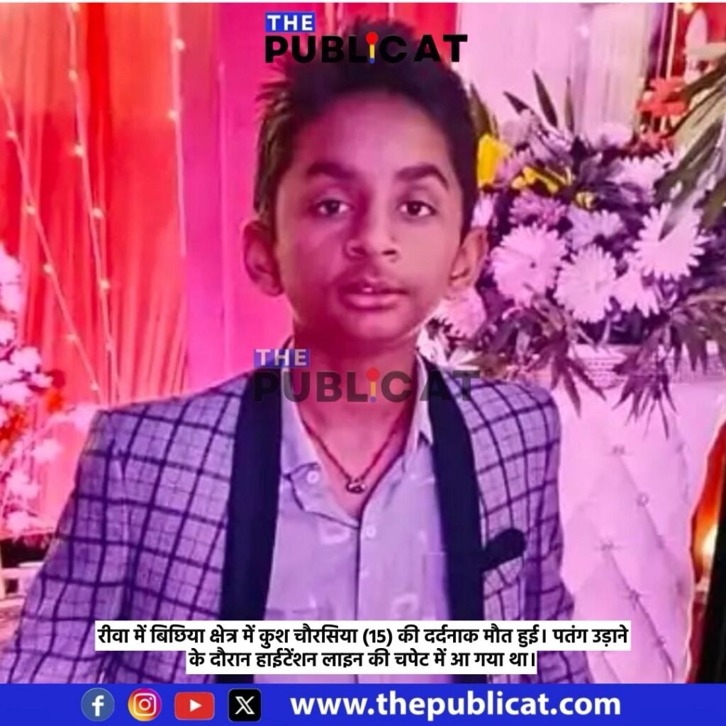 रीवा में मकर संक्रांति पर पतंग उड़ाते समय 15 वर्षीय कुश चौरसिया हाईटेंशन लाइन की चपेट में आ गया। करंट लगने से उसकी मौके पर ही मौत हो गई।