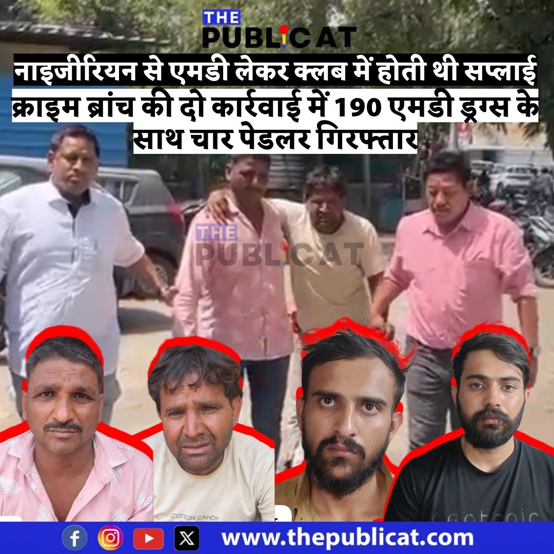 क्राइम ब्रांच डीसीपी ने बताया पहले मामले में हरिओम झा (26) निवासी द्वारका, नई दिल्ली और लक्ष्य सिंह राजपूत (26) निवासी दौसा राजस्थान को एमआर 10 के पुल के नीचे से 36 ग्राम एमडी ड्रग्स के साथ गिरफ्तार किया है। आरोपियों की टाटा अल्ट्रोज कार भी जप्त की गई है। पूछताछ में आरोपियों ने बताया कि हरिओम दिल्ली में पेटीएम क्यूआर कंपनी में सेल्समेन है। उसने एमडी ड्रग्स राजस्थान और दिल्ली के तस्करों से लिया था। इसके संपर्क में अन्य शहरों के तस्कर भी शामिल है। पहले गुजरात में अवैध शराब तस्करी करता था। वहीं, आरोपी लक्ष्य जयपुर के ब्ल्यूडेन बार क्लब में कार्य करता है। वह शहर के क्लब-पब में एमडी ड्रग्स सप्लाई करता था। दोनों का कनैक्शन नाइजीरियन ड्रग्स तस्करों से निकला है। पुलिस ने पूछताछ के बाद नाइजीरियन का नंबर ट्रेसिंग पर डाला है। इनसे पूछताछ में और भी खुलासे हो सकते है।