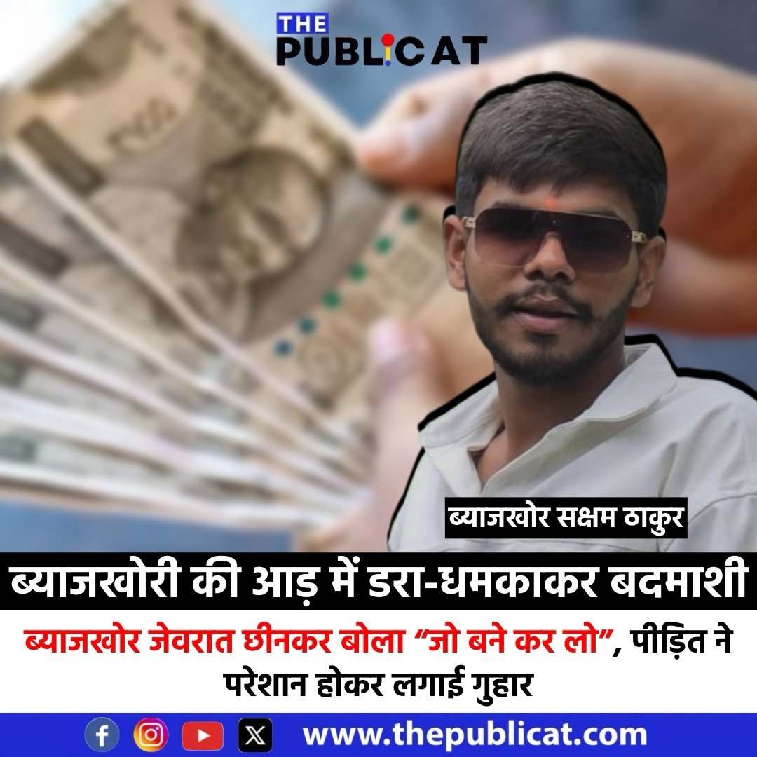 पीड़ित आकाश पिता मंगल सिंह सूर्यवंशी निवासी नेहरू नगर ने आरोप लगाया कि उन्होंने कुछ समय पहले जगजीवन रामनगर में रहने वाले सक्षम ठाकुर को पैसों की आवशकता पड़ने पर जेवरात दिए थे, लेकिन समय पर पैसा लौटाने के बाद भी ब्याजखोर सक्षम ने गहने हड़प लिए। जब आकाश ने गहने वापस मांगे तो सूदखोर ने खुलेआम दबंगई दिखाते हुए कहा – “मैंने जवाहरात बेच दिए, जो बने कर ले… कोई मेरा कुछ नहीं बिगाड़ सकता।”