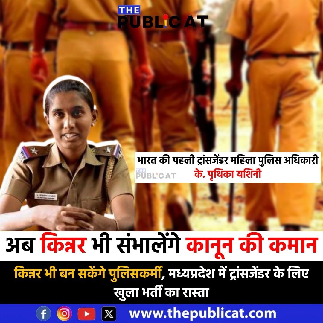 आपको बता दें, भारत की पहली ट्रांसजेंडर महिला पुलिस अधिकारी के. पृथिका यशिनी है। वह भारत के तमिलनाडु राज्य की पहली ट्रांस महिला सब-इंस्पेक्टर बनीं।