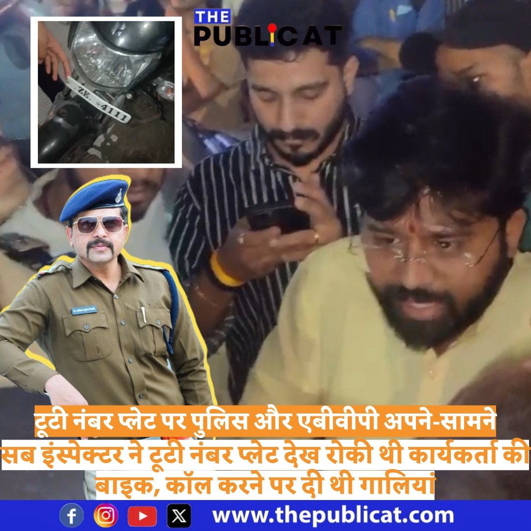 द पब्लिकेट, इंदौर। सोशल मीडिया पर ऐक्टिव रहने वाले सब इंस्पेक्टर काजिम हुसैन ने कल रात एबीवीपी के कार्यकर्ता की गाड़ी पकड़ ली, क्योंकि उसकी नंबर प्लेट जरा सी टूटी हुई थी। इसी बात पर सब इंस्पेक्टर ने उसके साथ अभद्रहता की गालियां दी। उसी दौरान कार्यकर्ता ने एबीवीपी के राष्ट्रीय महामंत्री वीरेंद्र सिंह सोलंकी को कॉल कर घटना बताई। जिसके बाद नाराज कार्यकर्ताओं ने मौके पर जाकर सब इंस्पेक्टर द्वारा की गई अभद्रहता का विरोध कर उसे हटाने की मांग की।