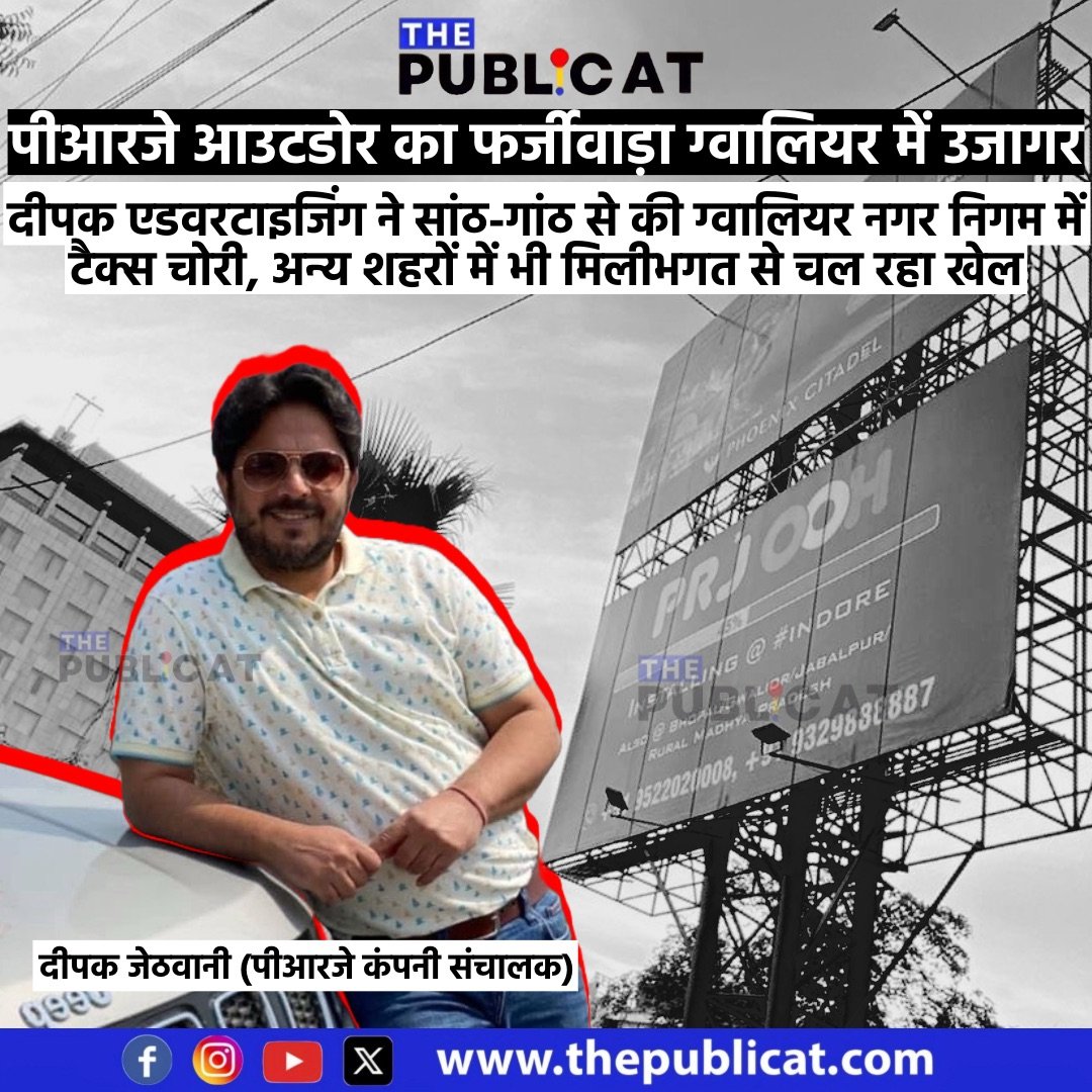 द पब्लिकेट, इंदौर। विज्ञापन लगाने के लिए यूनिपोल और होडिंग का टेंडर लेकर निगम से लाखों की धोखाधड़ी करने वाले दीपक एडवरटाइजिंग (पीआरजे आउटडोर मीडिया) का एक फर्जीवाड़ा ग्वालियर की सुर्खियों में बना हुआ है। मालिक दीपक जेठवानी ने मध्य प्रदेश के अलग-अलग शहरों में आउटडोर एडवरटाइजिंग का टेंडर ले रखा है और इसकी आड़ में वह निगम के ही अधिकारियों के साथ सांठ-गांठ कर निगम से लाखों रुपयों की टैक्स चोरी कर रहा है। ग्वालियर में हुई टैक्स चोरी के मामले में अभी तक दीपक जेठवानी पर कार्रवाई नहीं हुई है।