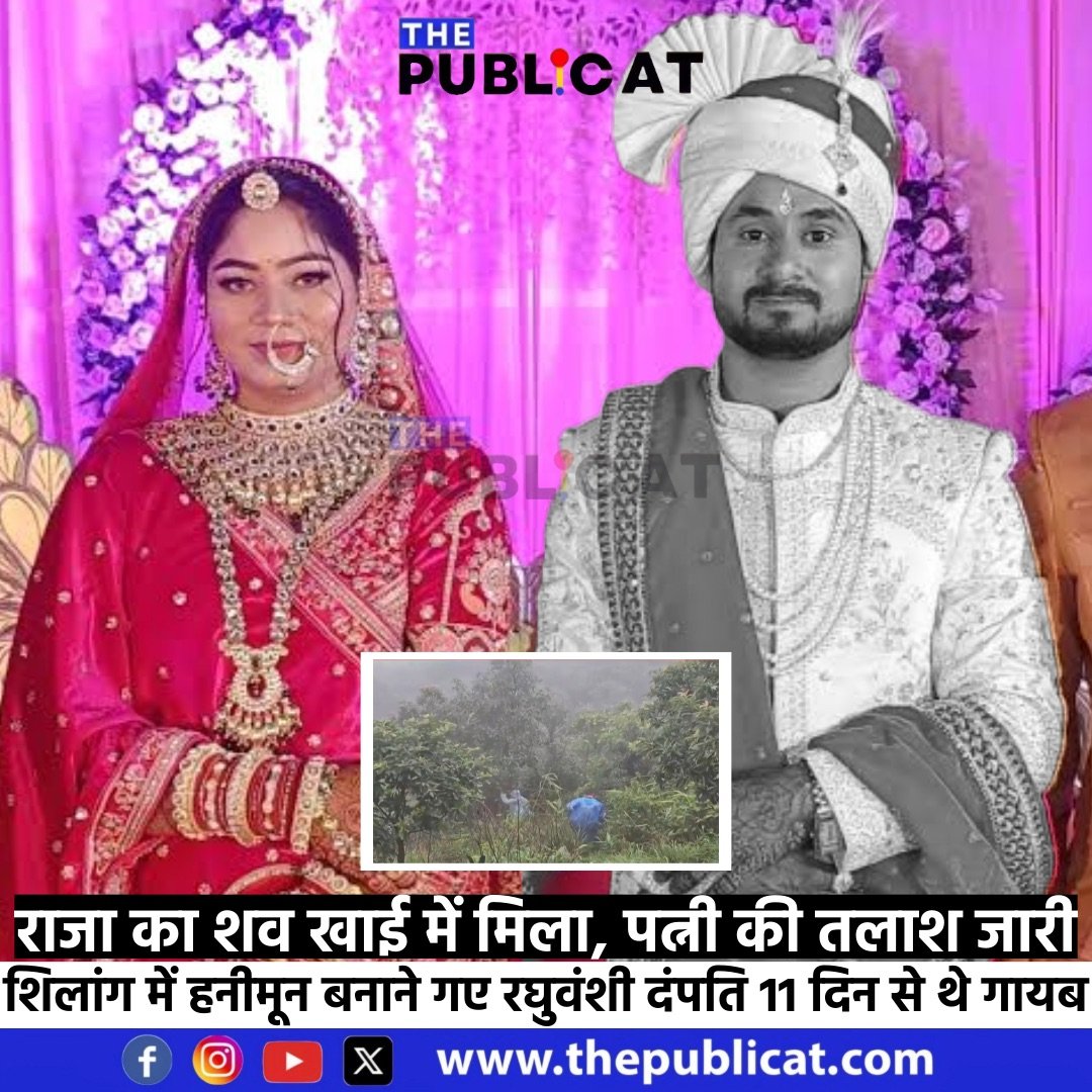 द पब्लिकेट, इंदौर। शिलांग में हनीमून मनाने 23 मई को पहुंचे रघुवंशी दंपति के लापता होने के मामले में नई खबर समाने आई है। एनडीआरएफ को सर्चिंग के दौरान पति राजा रघुवंशी की बॉडी खाई में मिली है। वहीं, पत्नी सोनम की तलाश की जा रही है। हालांकि मामले में अभी तक किसी अधिकारी ने राजा की बॉडी मिलने की पुष्टि नहीं की है।