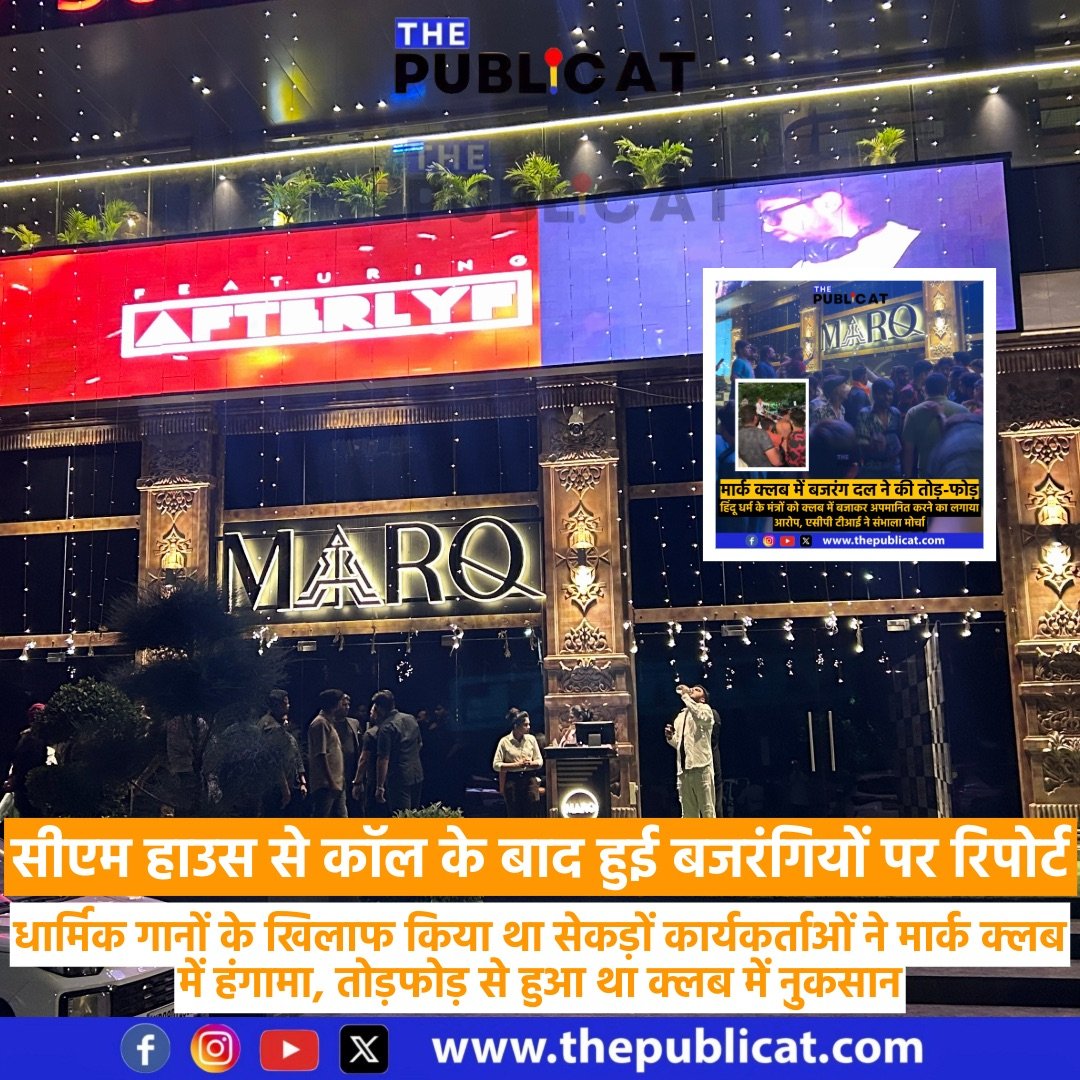 द पब्लिकेट, इंदौर। मार्क क्लब में डीजे माँ फाइजा के शो के दौरान हंगामा कर तोड़फोड़ करने वाले बजरंगियों के खिलाफ कल लसूड़िया थाने में केस हुआ। सीएम हाउस से फोन लगने के बाद कल रात रिपोर्ट हुई। बताया जा रहा है बजरंग दल में नए भर्ती हुए कार्यकर्ताओं ने जोश में होश खोकर क्लब में घुसकर तोड़फोड़ कर दी थी।