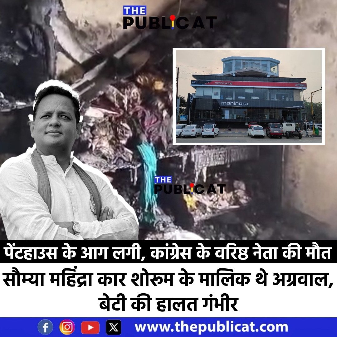 द पब्लिकेट, इंदौर। गुरुवार तड़के इंदौर के लसूड़िया इलाके में भीषण आग की घटना ने शहर को दहला दिया। सौम्या महिंद्रा कार शोरूम के ऊपर बने पेंटहाउस में आग लगने से नर्मदा सेना के राष्ट्रीय अध्यक्ष और कांग्रेस के वरिष्ठ नेता प्रवेश अग्रवाल की मौत हो गई। हादसे में उनकी बड़ी बेटी सौम्या (15) गंभीर रूप से झुलस गई है, जिसे बॉम्बे हॉस्पिटल में भर्ती कराया गया है। वहीं, पत्नी श्वेता और छोटी बेटी मायरा (10) को गार्ड्स की मदद से सुरक्षित बाहर निकाल लिया गया।