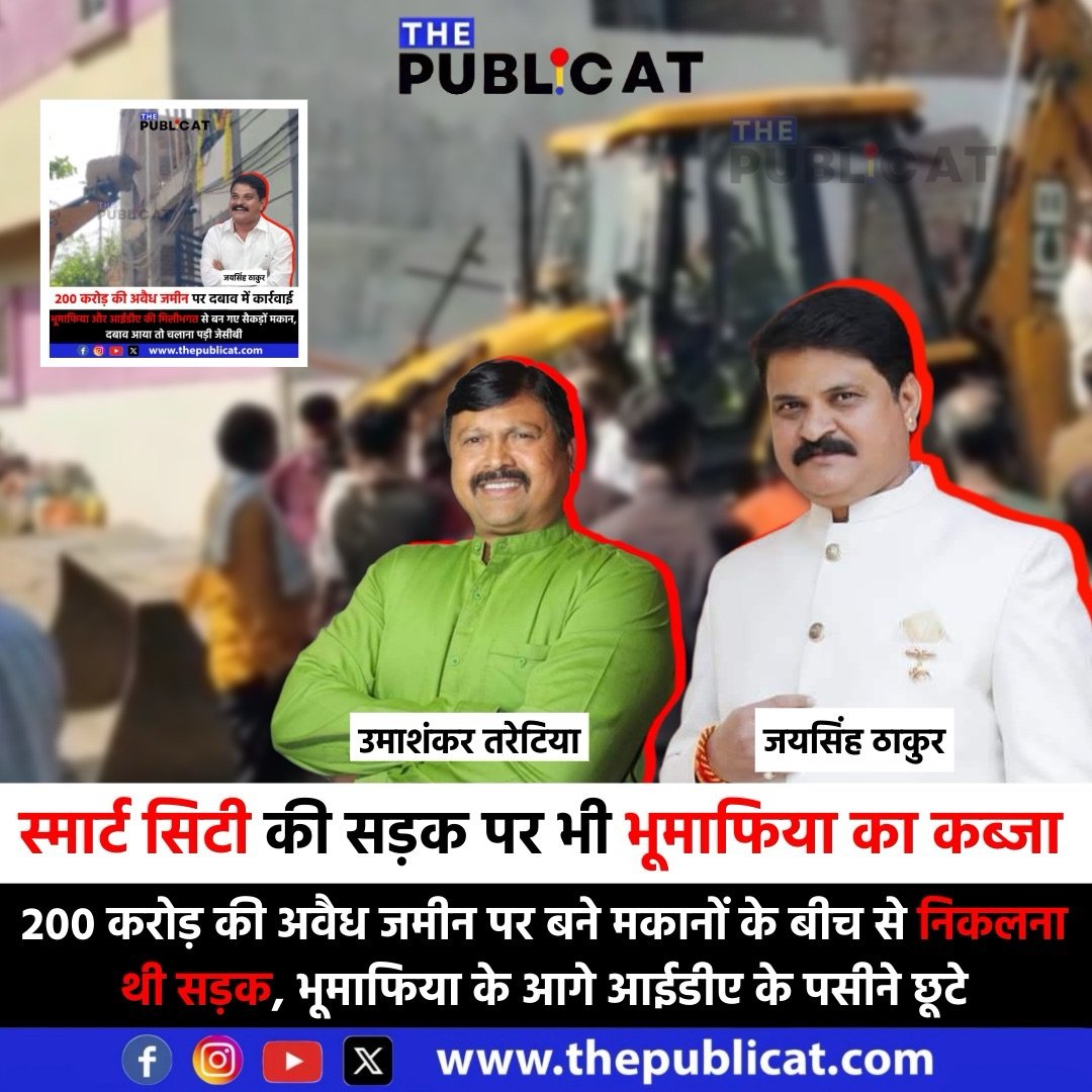 सुखलिया इलाके योजना क्रमांक 139 की सरकार (आईडीए) की जमीन पर भूमाफिया जयसिंह ठाकुर, कमल चौधरी, मांगीलाल पिता बद्रीलाल चौधरी और जाहिद अली ने अवैध कब्जा कर लिया था। सालभर तक इसके खिलाफ शिकायतें होते रही लेकिन कुछ ठोस कार्रवाई नहीं हुई। पिछले हफ़्ते जब कलेक्टर के सामने शिकायत हुई तो आईडीए कॉलोनी में जेसीबी लेकर पहुंची लेकिन रहवासियों ने विरोध किया। अब यह बात सामने आ रही है कि जिस 200 करोड़ की जमीन को भूमाफिया खुद की बता रहा था वहां से स्मार्ट सिटी की सड़क निकालने वाली है जो सीधे एमआर-10 में बन रहे बस स्टैंड पर निकलेगी। इसका सीधा मतलब यह निकलता है कि भूमाफिया जयसिंह और उसके साथियों के कारण उन सैकड़ों परिवारों का घर तो उजड़ेगा ही तो वहीं, स्मार्ट सिटी की सड़क तय समय पर न बनने से डेवलपमेंट में लेट-लतीफ़ी होगी और आम जानता को भी परेशान होना पड़ेगा। इन सबके बाद भी अभी तक इसकी गिरफ़्तारी नहीं हुई है।