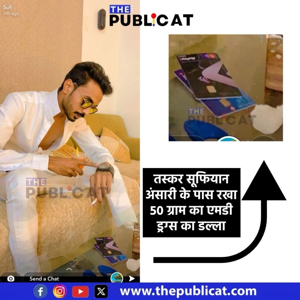 मीडिया संस्थान होने के नाते द पब्लिकेट भी नशे के खिलाफ है। द पब्लिकेट को पढ़ने वाले कुछ लोगों ने नाम न छापने की शर्त पर उन तस्करों की जानकारी भेजी है, जो युवाओं को नशे की लत लगवा रहे है। आपको जानकारी हैरानी होगी कि साकेत नगर के पास काकड़ इलाके में सूफियान अंसारी नाम का तस्कर जमकर एमडी ड्रग्स की तस्करी कर रहा है। तस्कर सूफियान ने तीन दिन पहले सोशल मीडिया पर मोबाइल के पीछे एमडी ड्रग्स से एस लिखकर फोटो डाला था। इससे पहले ईद पर फोटो डाला था जिसमें वह पोज देकर बैठा है और टेबल पर क्रेडिट कार्ड के साथ करीब 50 ग्राम की एमडी ड्रग्स का डल्ला रखा है, जिससे साफ जाहिर होता है कि सूफियान का ड्रग्स नेटवर्क स्ट्रॉंग है। एक महीने पहले का एक और वीडियो आया है जिसमें तस्कर का दोस्त आमिर खान युवती को एमडी ड्रग्स की मोबाइल पर लाइन लगवा रहा है।