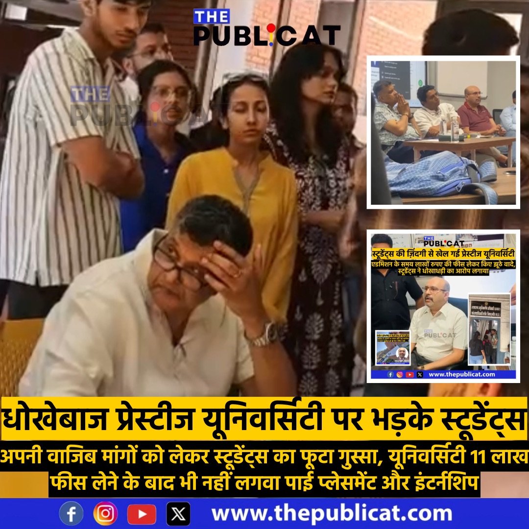 यूनिवर्सिटी में आखरी सेमेस्टर आते ही जब स्टूडेंट्स ने प्रबंधक से इंटर्नशिप और प्लेसमेंट की मांग की तब उसने टरका दिया। चार से पांच महीने बीत जाने के बाद जब स्टूडेंट्स ने प्रबंधक से सवाल किया तो वह मुकर गए। स्टूडेंट्स को पुलिस की धमकी देने लगे। इससे गुस्साए छात्रों ने प्रेस्टीज यूनिवर्सिटी के खिलाफ प्रदर्शन किया। छात्रों का कहना है कि एडमिशन से समय हमसे 11 लाख फीस ली गई। कहा गया था कि 8 से 10 लाख का प्लेसमेंट लगेगा, 30 से 50 हजार तक की इंटर्नशिप मिलेगी। लेकिन ऐसा कुछ नहीं हुआ। छात्रों की फीस लेकर प्रबंधक और मालिक ने सिर्फ अपनी जेबें गर्म की है।