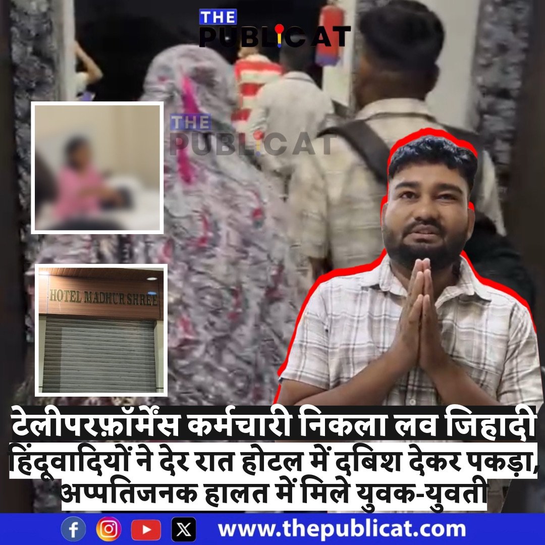 बताया जा रहा है जिस होटल से जिहादी और युवती पकड़ाए उस होटल संचालक ने युवक की आईडी में मुस्लिम नाम होने के बाद भी दोनों को कमरा दे दिया। युवती का कहना था कि होटल संचालक ने हमें कमरा लेने के दौरान माना तक नहीं किया