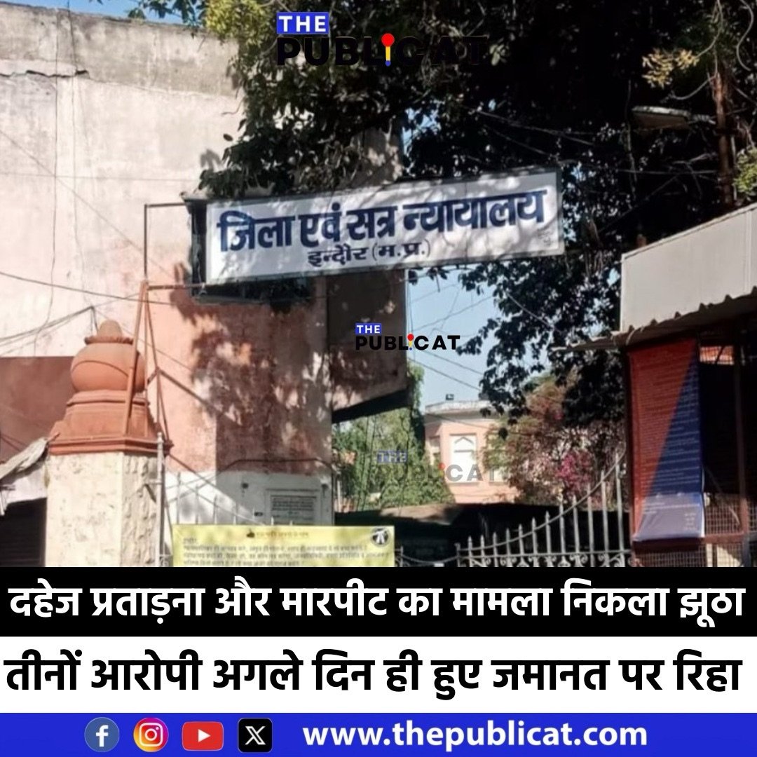 द पब्लिकेट, इंदौर। परदेशीपुरा थाना क्षेत्र में दहेज प्रताड़ना और घरेलू हिंसा के मामला में अगले दिन ही आरोपियों को जमानत मिल गई। पुलिस थाना परदेशीपुरा में दिनांक 7 दिसंबर को अपराध क्रमांक 617/2025 के तहत धारा 85, 296, 351(3), 3(5) बीएनएस एवं दहेज प्रताड़ना अधिनियम की धारा 3/4 में प्रकरण दर्ज किया गया।