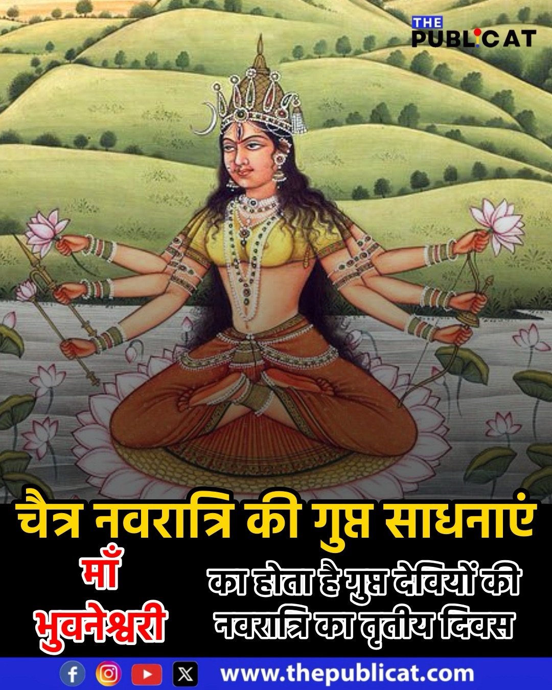 द पब्लिकेट, धार्मिक। चैत्र नवरात्रि का चौथा दिन महाविद्या भुवनेश्वरी का माना माता है। माता को नवरात्रि के चौथे दिन इनकी पूजा का विशेष महत्व है। माँ भुवनेश्वरी को सताक्षी और शाकमभरी के रूप में भी जाना जाता है।