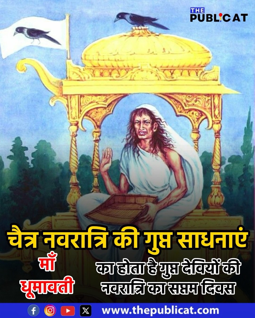 द पब्लिकेट, इंदौर। तंत्र विद्या में वर्णित दस महाविद्या देवियों में से सातवीं देवी माँ धूमावती को “धुएँ वाली” के रूप में जाना जाता है, जो शून्यता, वैराग्य और हानि एवं पीड़ा की अपरिहार्य वास्तविकताओं का प्रतीक हैं। मुख्य रूप से इनकी साधना सिर्फ़ अविवाहित पुरुष और विधवा स्त्री ही करते है। सुहागिनें दूर से दर्शन कर सकती हैं, लेकिन घर में साधना या प्रतिमा की पूजा वर्जित मानी जाती है।